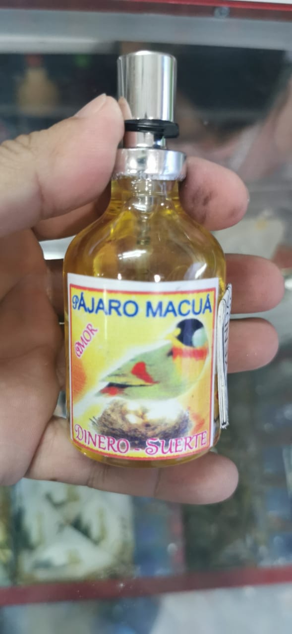 Pajaro Macua perfume, buena suerte. Perfume Pajaro Macua con rodar - El Original en su botella,Este maravilloso aceite preparado con las mejores esencias y con el nido del pájaro macuá, el cual dicen es indicado para atraer suerte en el dinero